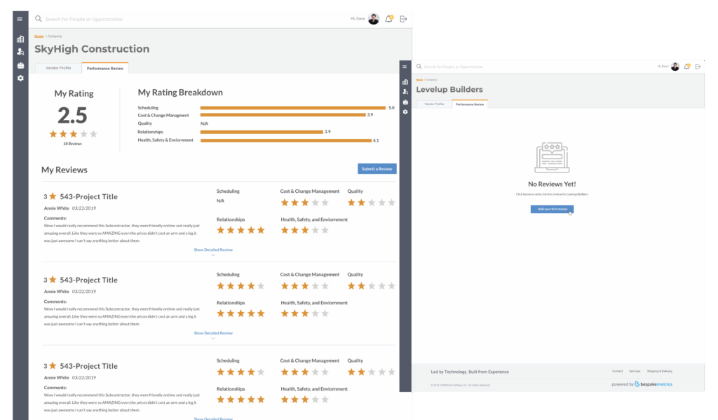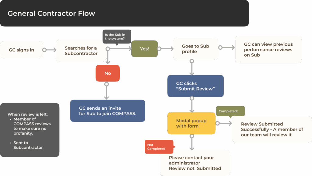 At Bespoke Metrics, our Compass application aimed to guide General Contractors (GCs) through pre-construction risk. Yet, a problem persisted: GCs struggled to truly assess a Subcontractor’s on-site capabilities before hiring.