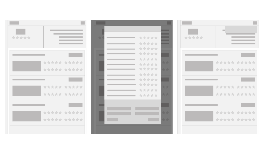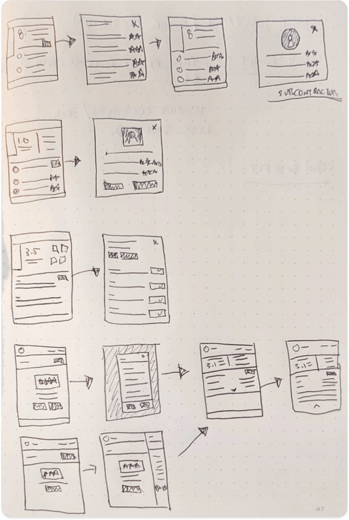 Research & Ideation: We analyzed different rating systems (Google, Amazon, Yelp, clothing websites) for best practices in layout and interaction. “Crazy 8s” sketching exercises helped generate diverse layout ideas.