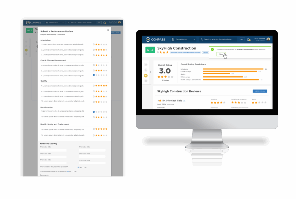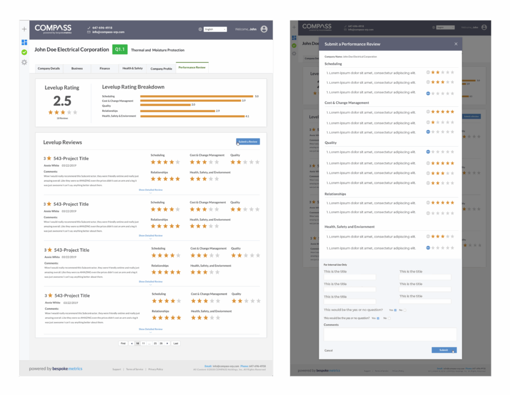 Our mission, starting March 2019, was to create the “Performance Review” feature. GCs needed more than our “Q Score”βa rating of business, finance, and safety; they needed real insight into actual on-site work. They were tired of unreliable reference checks, and Subcontractors wanted a fair chance to showcase their quality. As Lead Designer, with a small dev team and a Product Owner, I set out to build this crucial transparency into subcontractor selection.